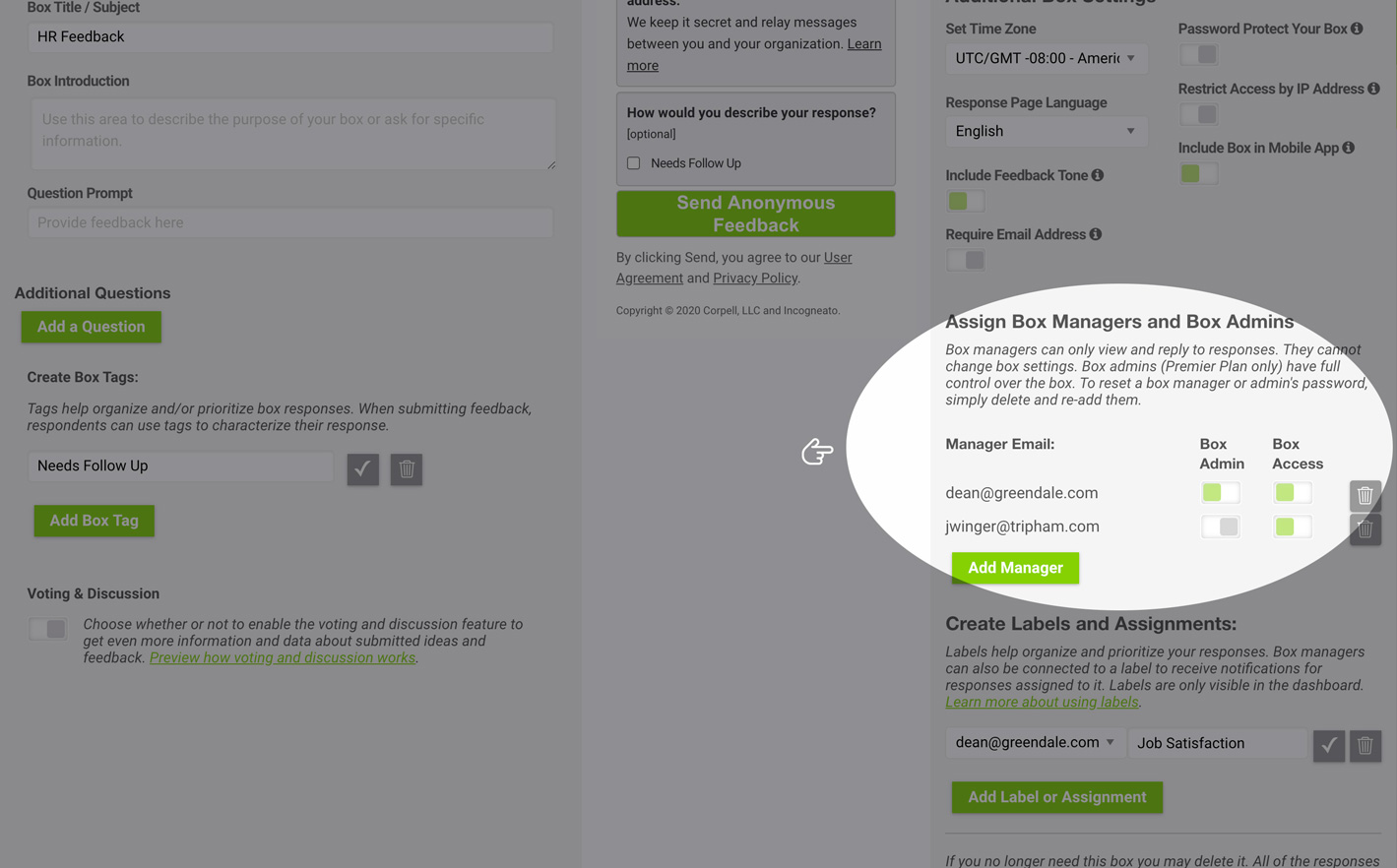 Box managers can only view and reply to your responses. They cannot change any box or account settings.